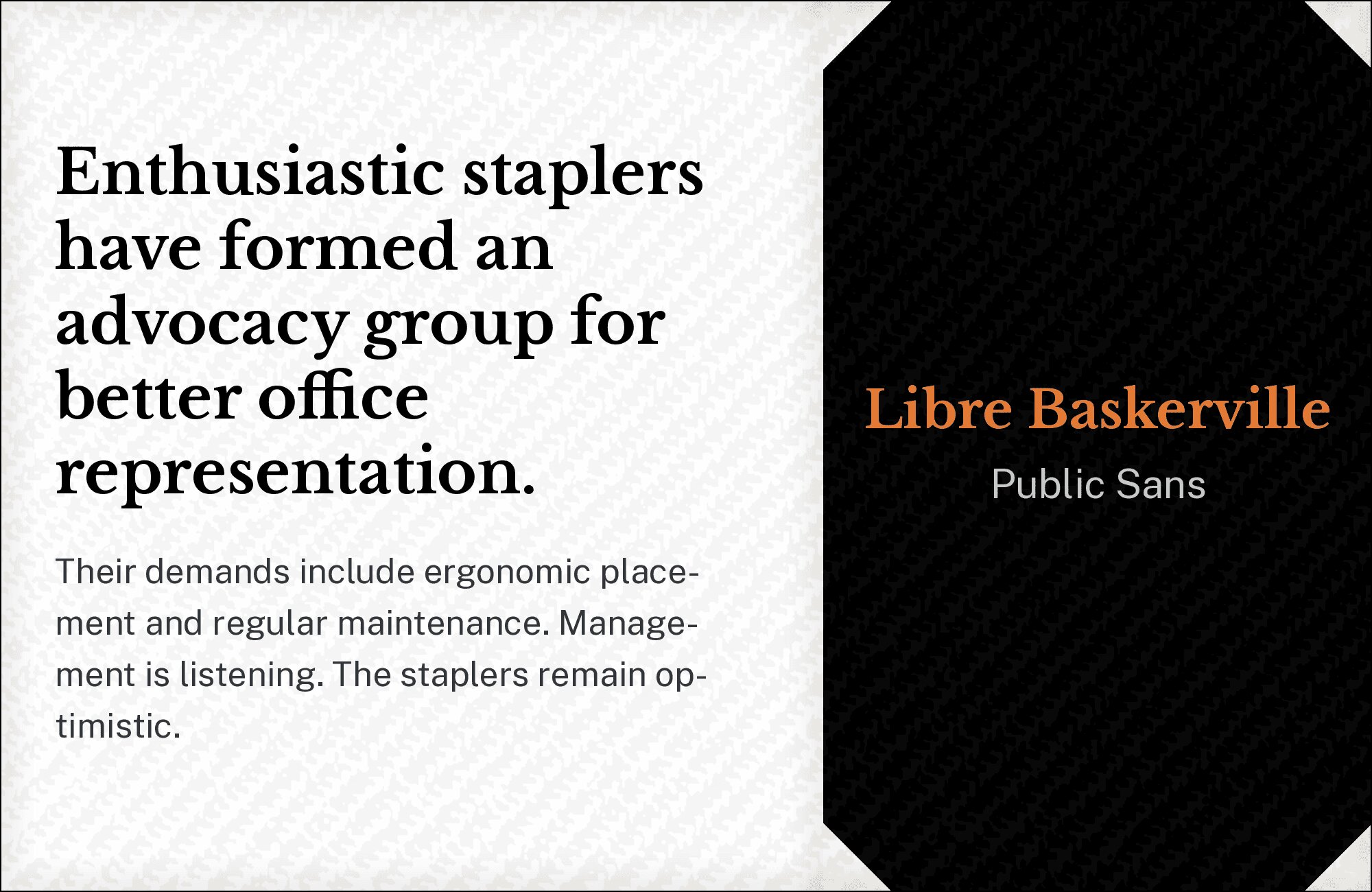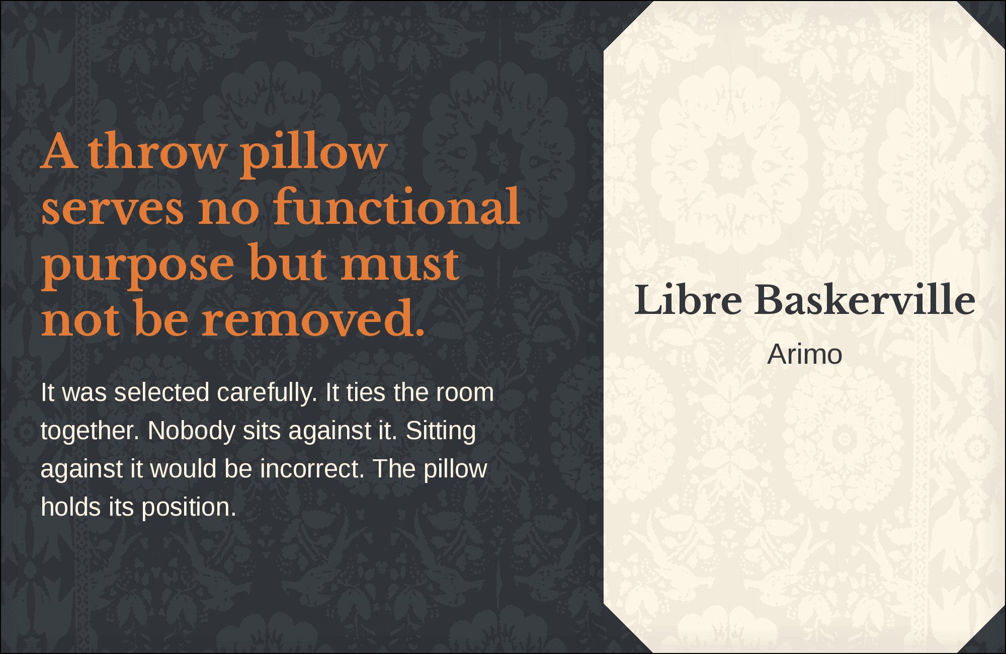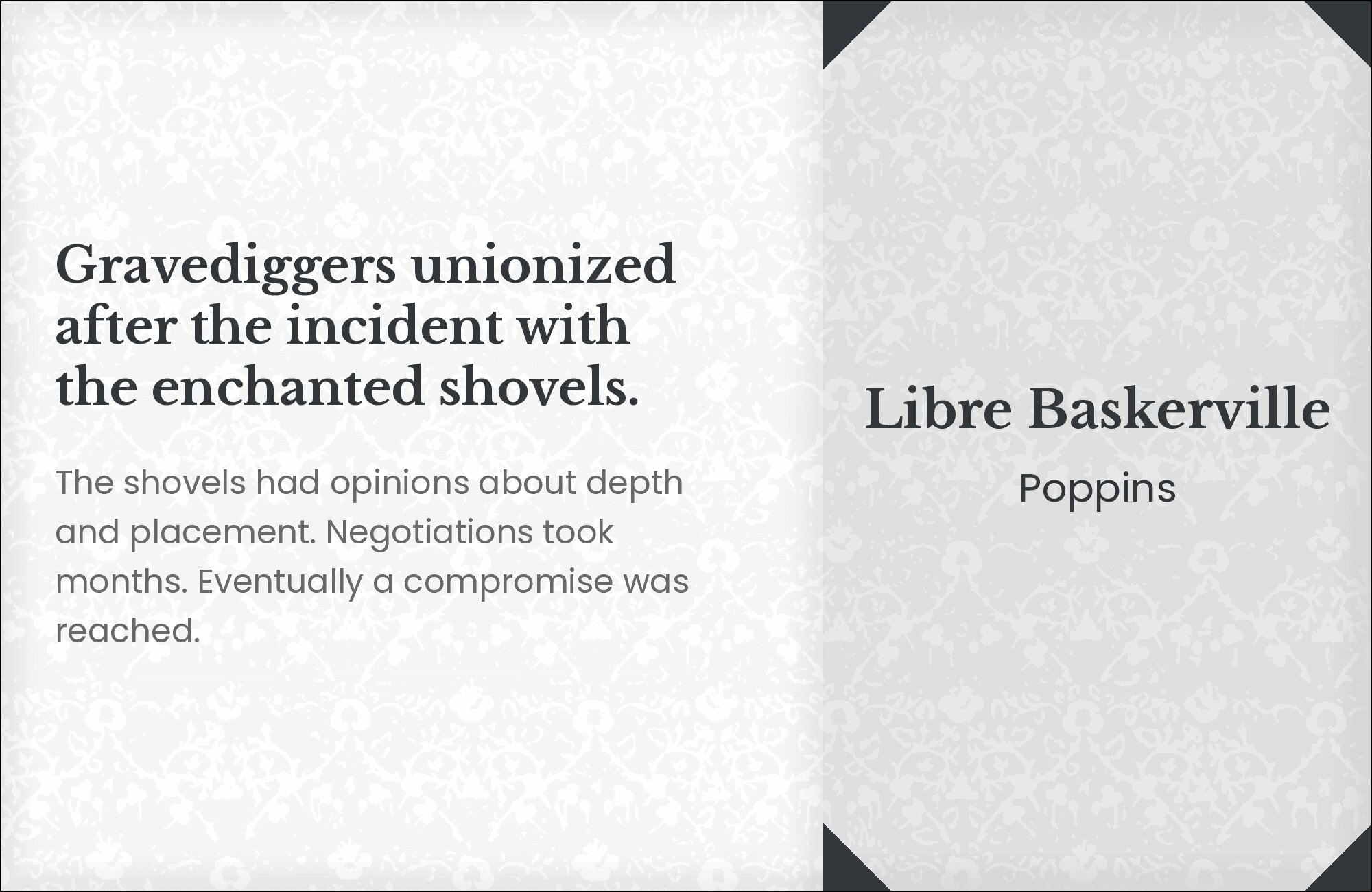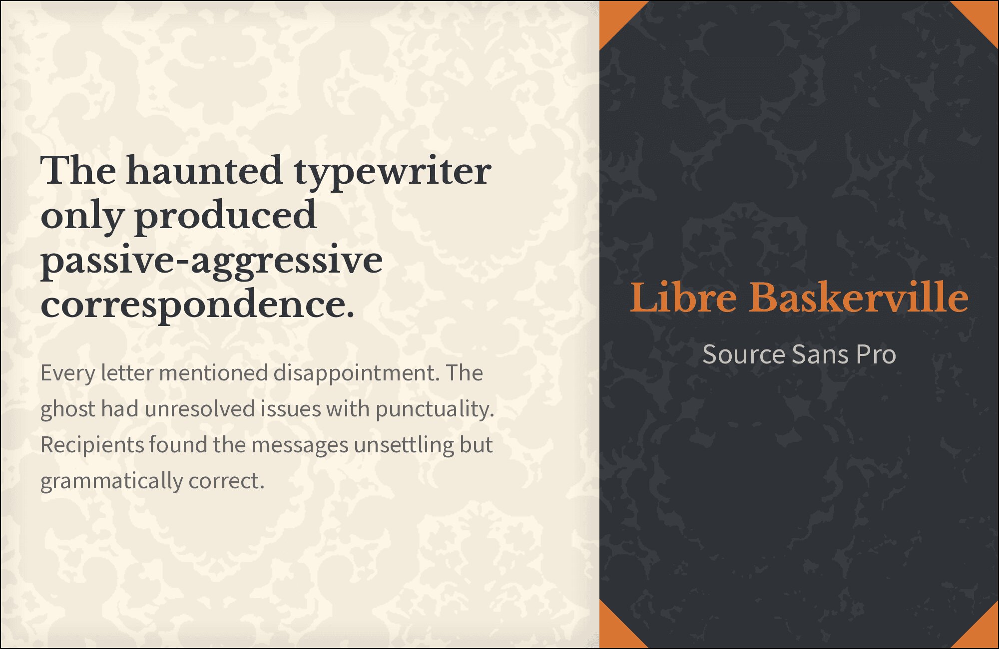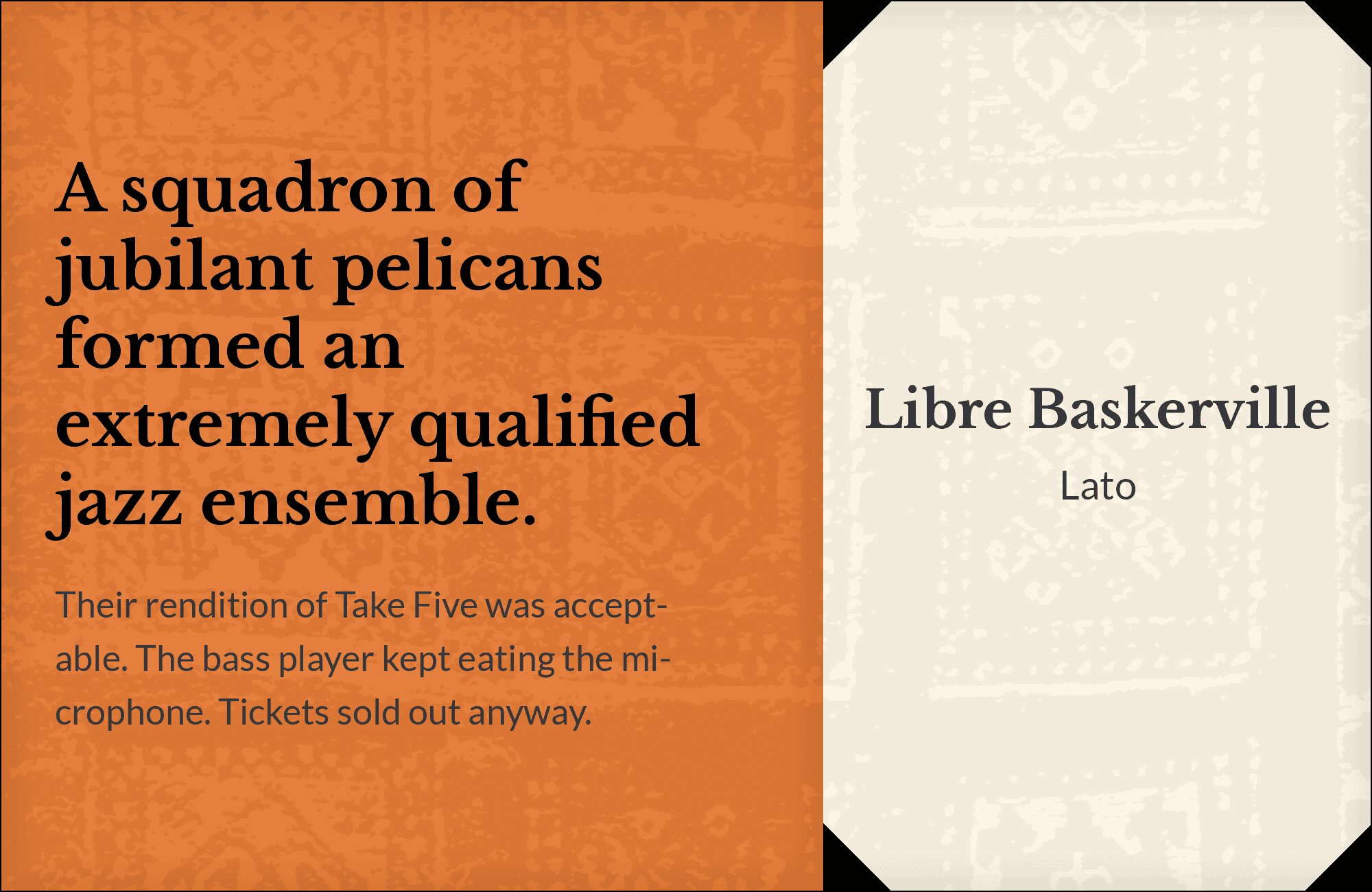 What fonts go with Libre Baskerville? This web-optimized revival of the classic Baskerville design needs companions that respect its literary heritage while accommodating its screen-first approach.