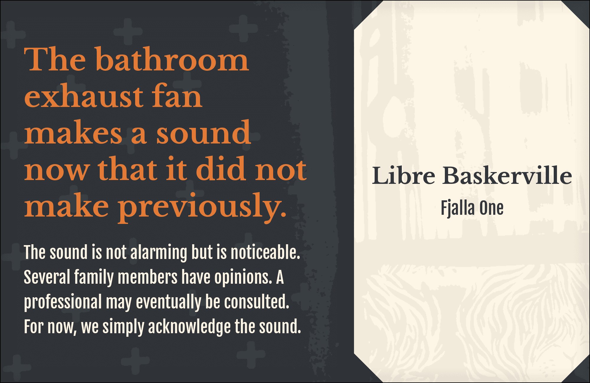 Bold condensed headlines tower over refined serif body text. Fjalla One‘s compact power creates visual impact while Libre Baskerville unfolds gracefully below, its bracketed serifs and classical proportions ensuring comfortable reading. The weight and width contrast establishes unmistakable hierarchy. Perfect for news sites, magazine layouts, or content platforms prioritizing scannable headlines.