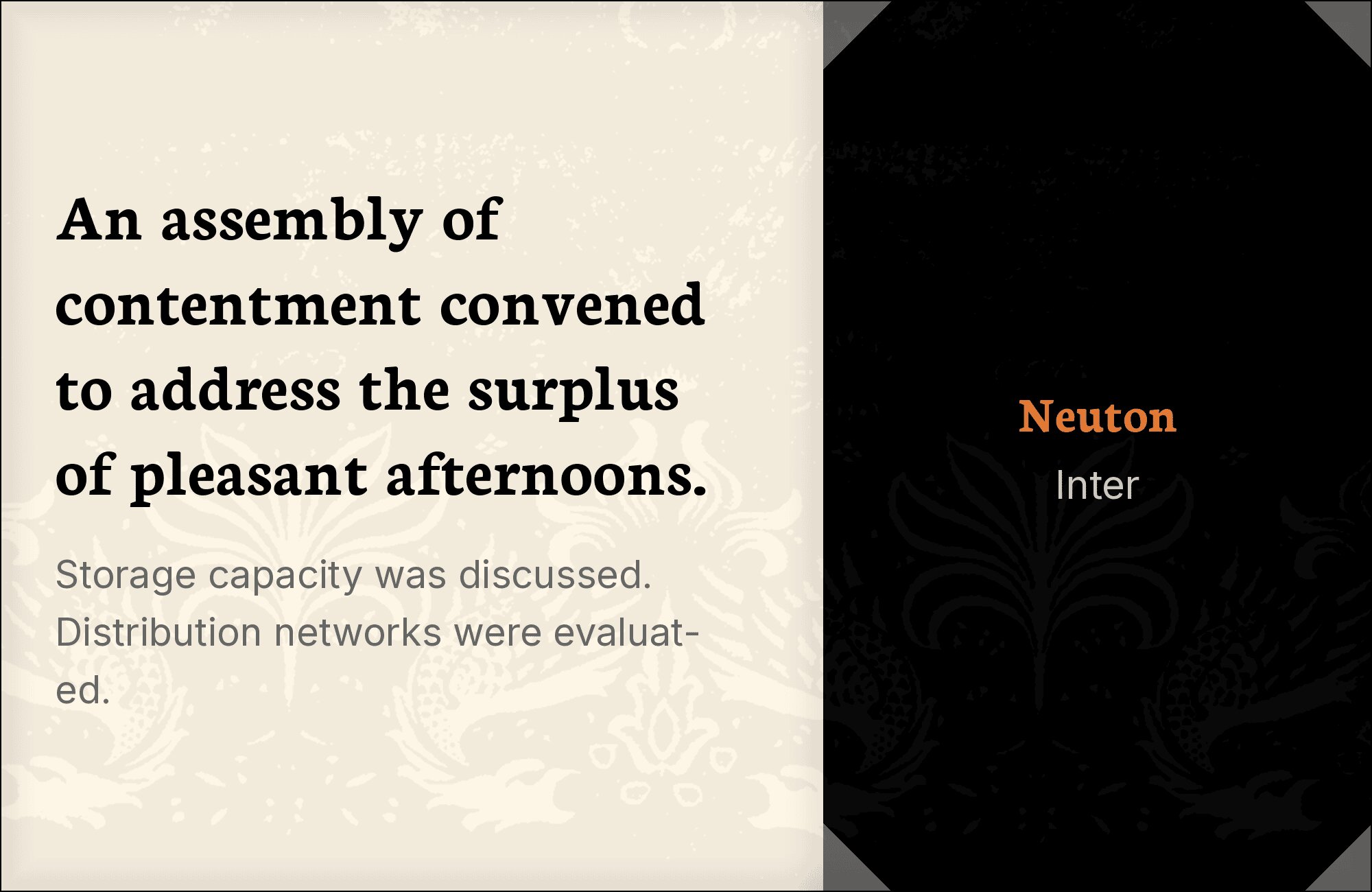 What fonts go with Neuton? This smooth, Dutch-inspired serif brings bold confidence and straightforward elegance that demands partners capable of matching its powerful personality without overwhelming the page.