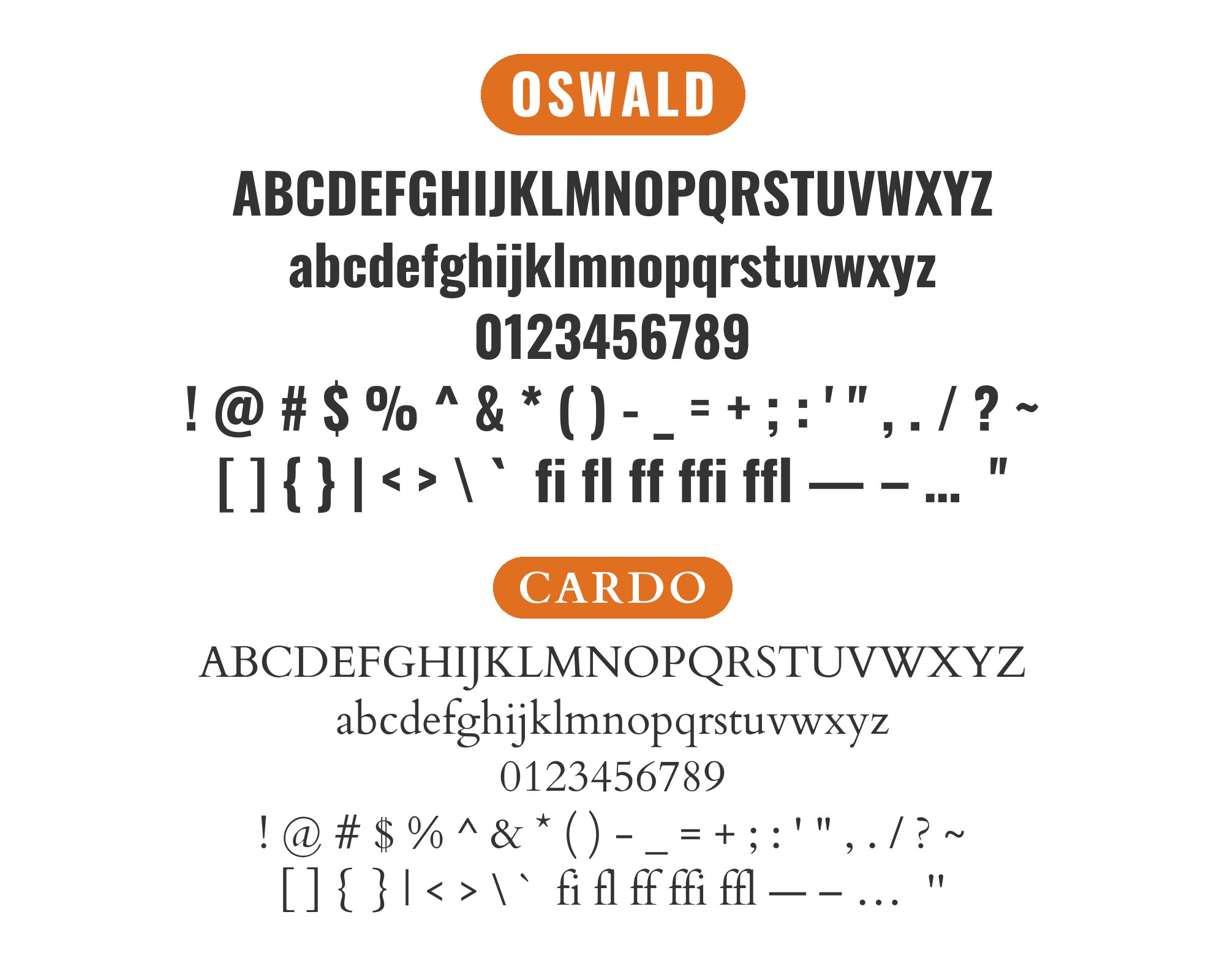 Scholarly precision meets headline efficiency. Cardo was designed for classicists and medievalists, bringing expert-level character support and subtle typographic refinement. Paired with Oswald’s straightforward boldness, it creates an academic aesthetic that remains accessible. Ideal for university websites, research publications, or educational platforms where authority must coexist with modern usability.