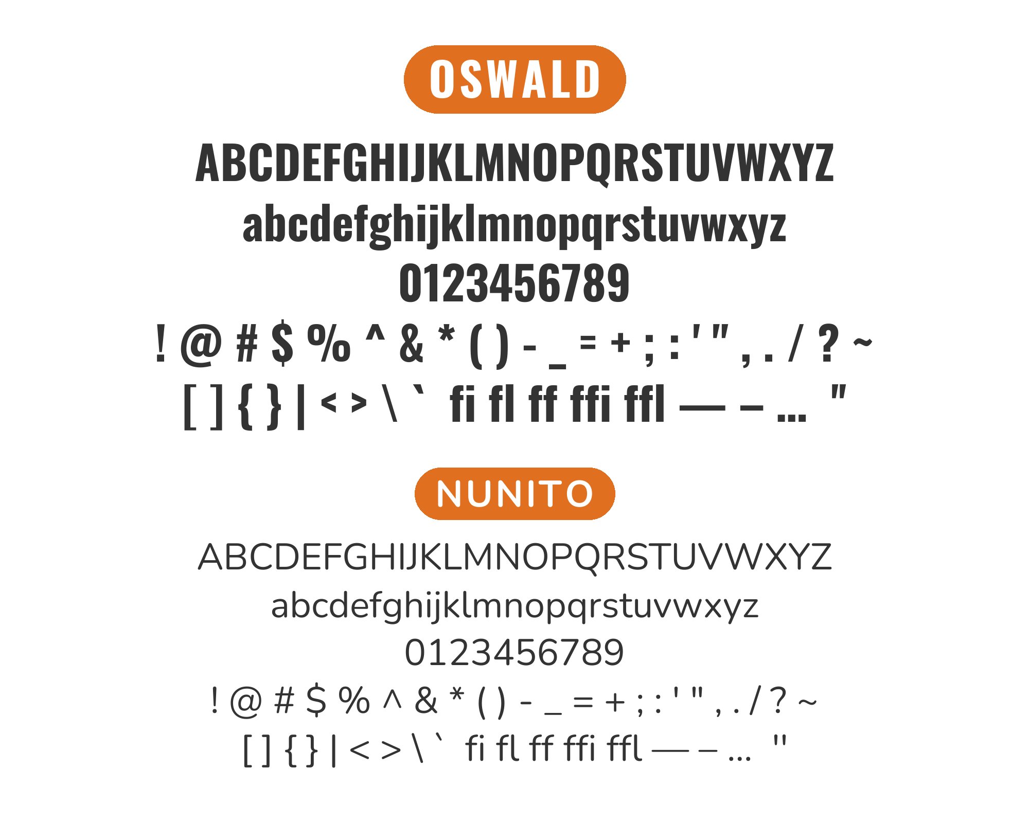 Nunito‘s rounded terminals act like a diplomatic envoy, softening Oswald’s sharp-edged militancy into something more approachable. The geometric underpinnings of both fonts create subtle kinship, while Nunito’s fuller letterforms provide breathing room beneath those dense headlines. This combination works beautifully for educational platforms, family-oriented brands, or anywhere you need strength without severity. The rounded-meets-angular dynamic keeps things lively without chaos.