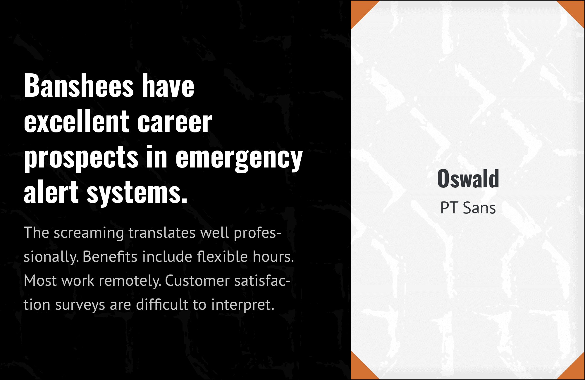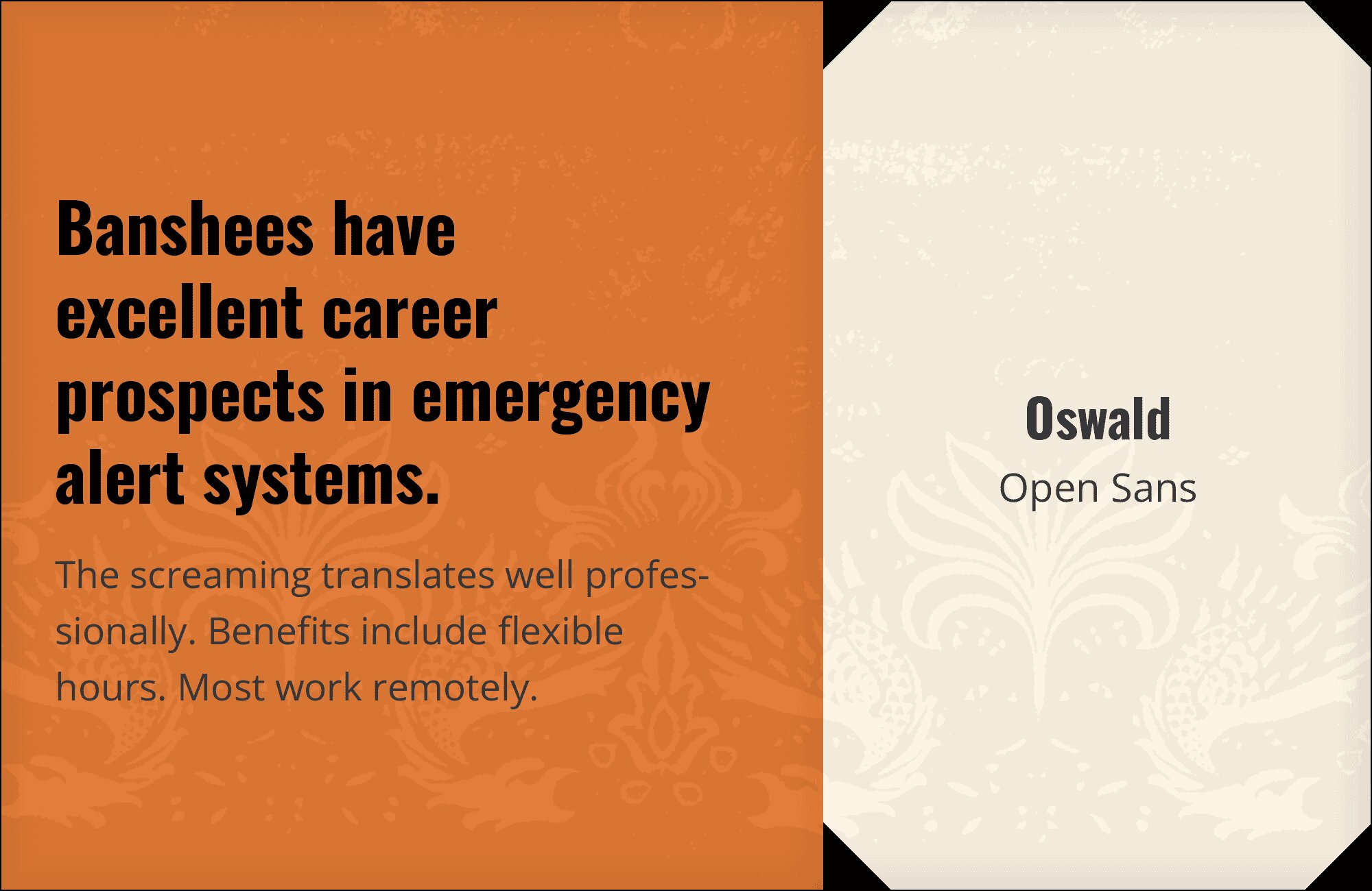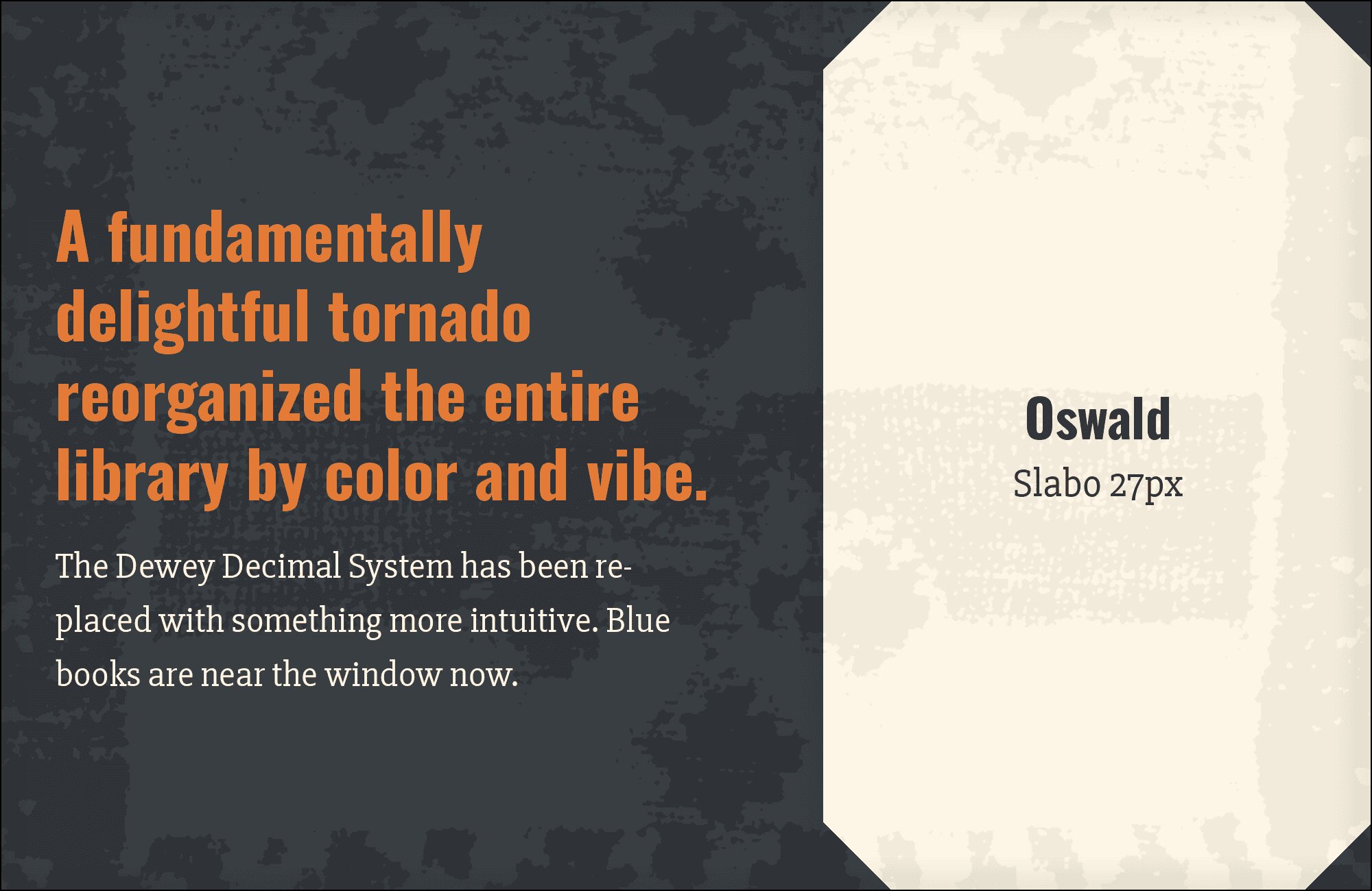 What fonts go with Oswald? This bold condensed sans-serif brings high-impact headlines energy that demands equally considered companions for supporting text roles.
