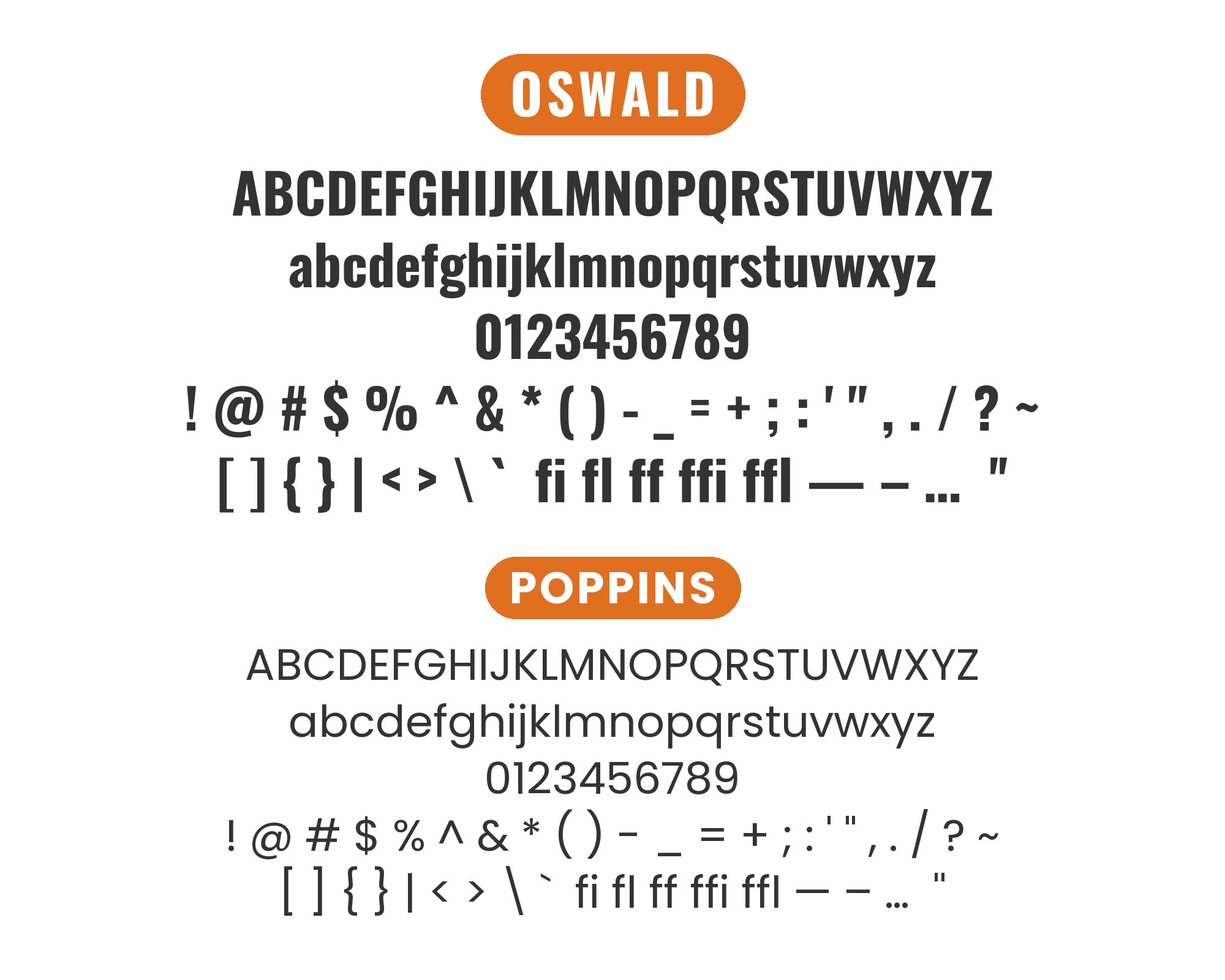Geometric collision creates unexpected harmony. Poppins brings perfectly circular counters and even stroke weight that somehow complements Oswald’s narrow, high-contrast letterforms. The tension between Poppins’ playful geometry and Oswald’s serious condensed style generates visual energy without discord. This pairing thrives in modern web applications, creative agency sites, or anywhere contemporary aesthetics need an anchor of typographic weight.