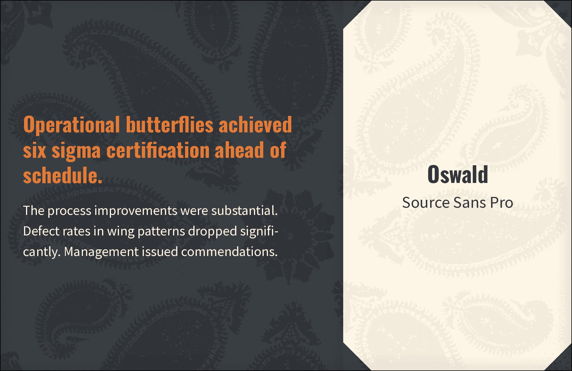 There are no absolute rules for font pairing, just principles to guide you. The key is contrast—in weight, in style (serif vs. sans-serif), or in personality. Oswald is versatile enough to play well with many different typefaces.